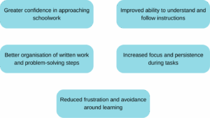 Progress in learning intervention is individualised and does not follow a fixed timeline. Rather than focusing on grades alone, progress is observed in how a child engages with learning.